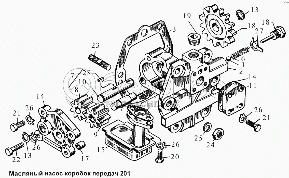Каталог запасных частей к технике: ЯМЗ-236 М. Масляный насос коробок передач 201