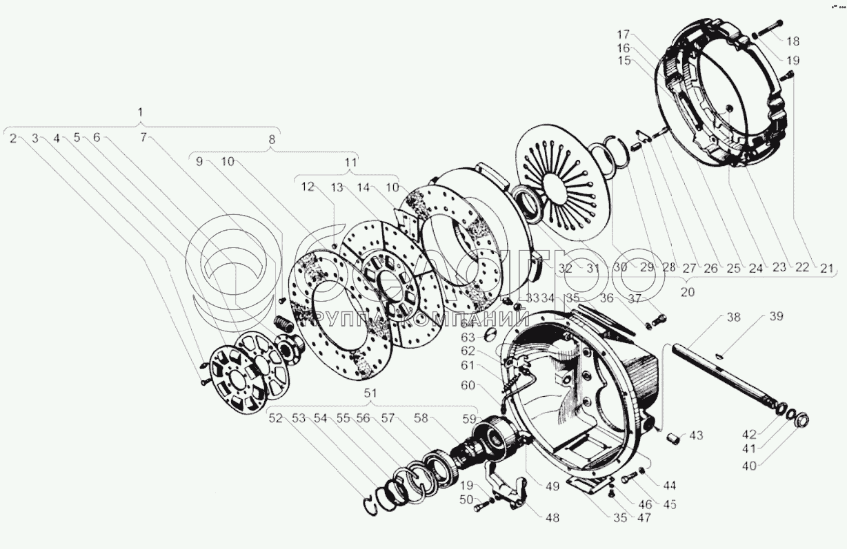 Каталог запасных частей к технике: ЯМЗ-236М2. Сцепления ЯМЗ-181