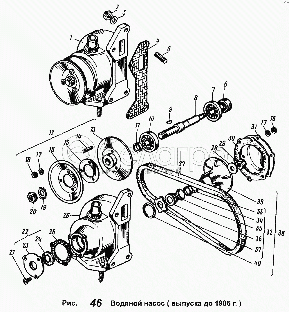 Каталог запасных частей к технике: ЯМЗ-238 Л. Водяной насос (выпуска 1986 г.)