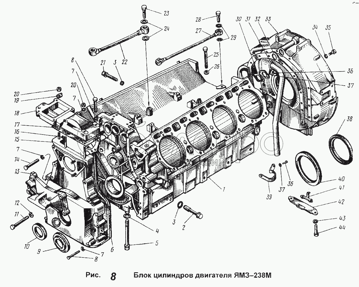 Каталог запасных частей к технике: ЯМЗ-238 М. Блок цилиндров двигателя ЯМЗ-238М