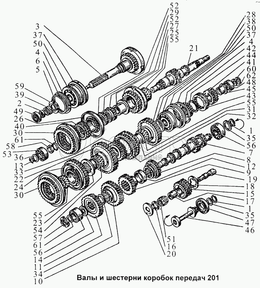 Каталог запасных частей к технике: ЯМЗ-238 М. Валы и шестерни коробок передач 201