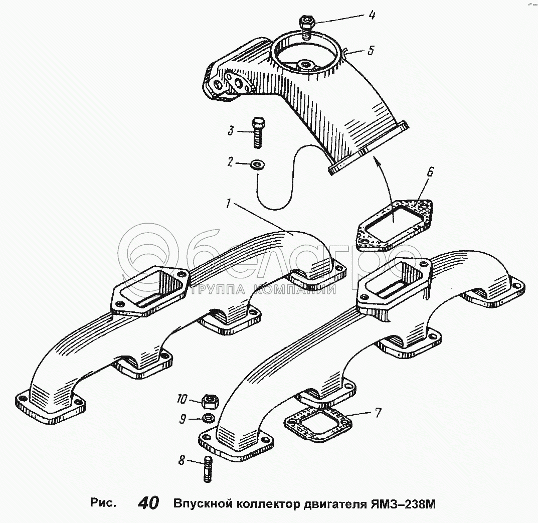 Каталог запасных частей к технике: ЯМЗ-238 М. Впускной коллектор двигателя ЯМЗ-238М