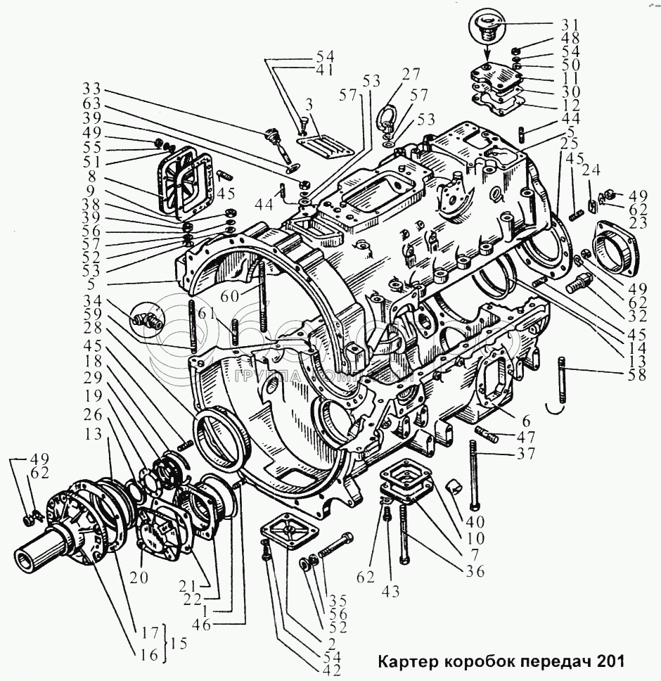 Каталог запасных частей к технике: ЯМЗ-238 Н. Картер коробок передач 201