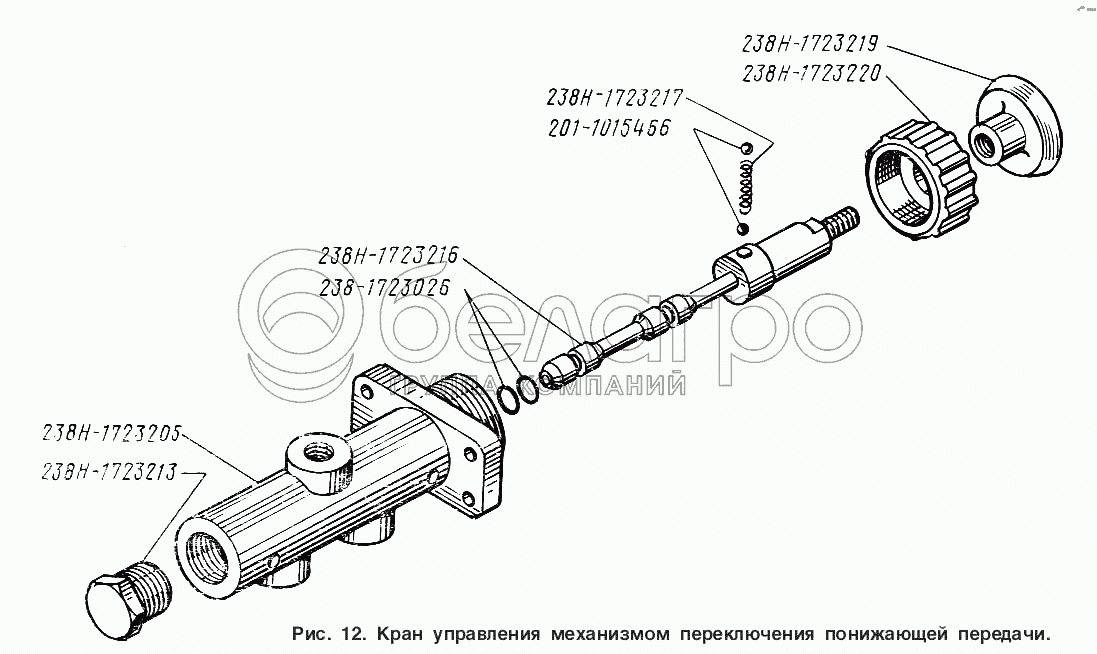 Каталог запасных частей к технике: ЯМЗ-238 Н. Кран управления механизмом переключения понижающей передачи