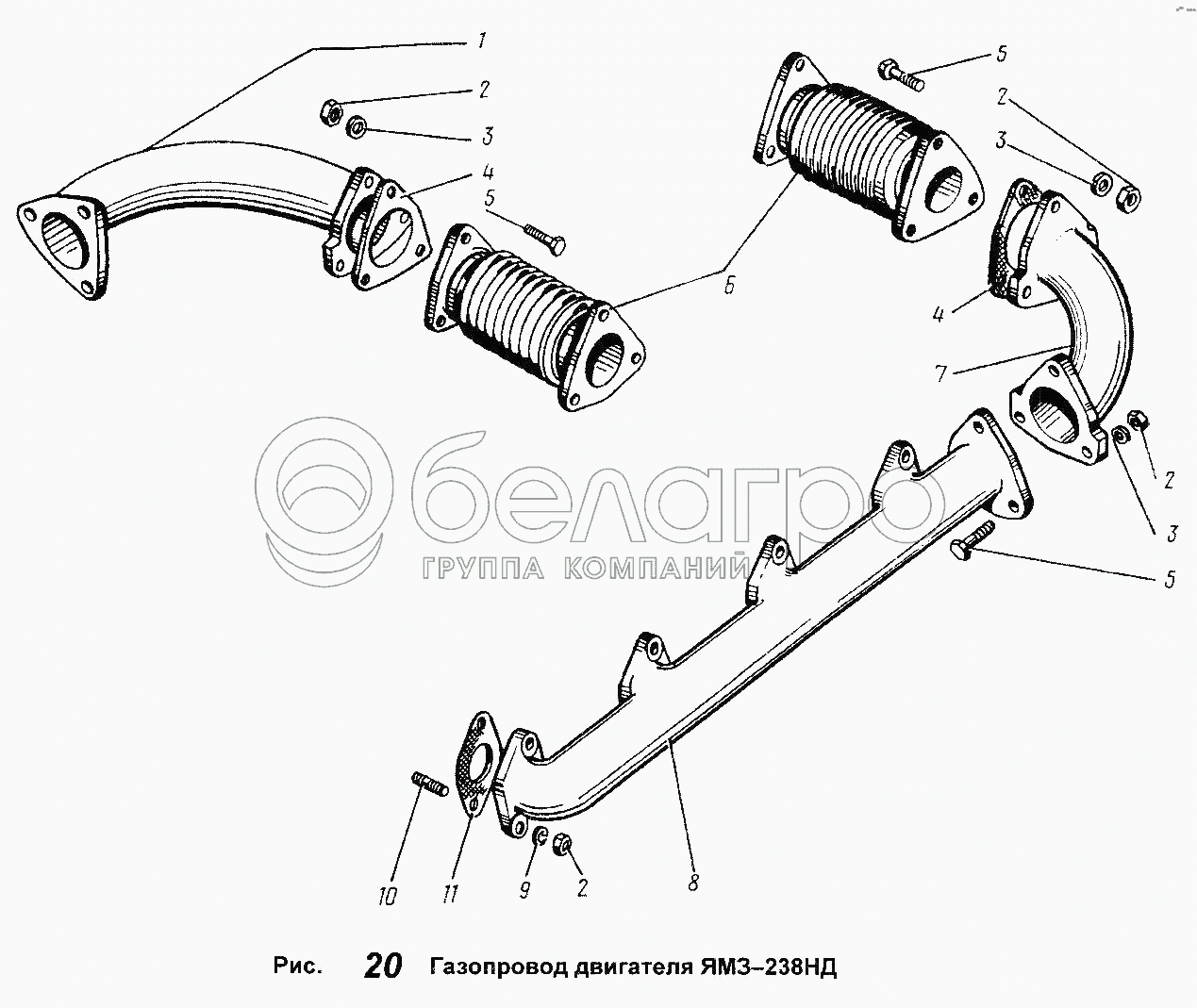 Каталог запасных частей к технике: ЯМЗ-238 НД. Газопровод двигателя ЯМЗ-238НД