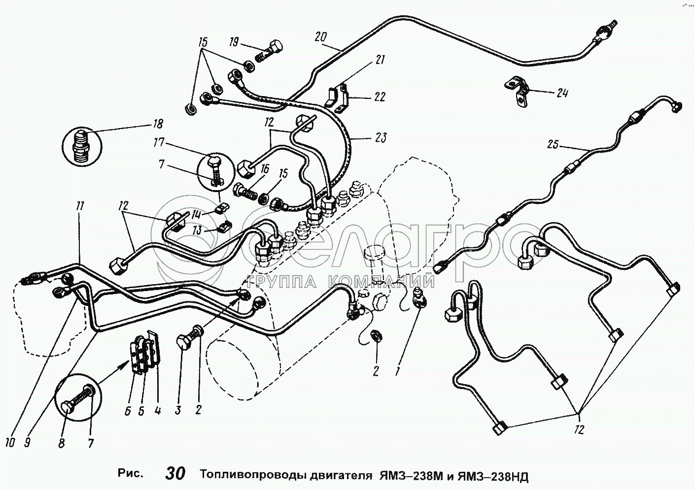 Каталог запасных частей к технике: ЯМЗ-238 НД. Топливопроводы двигателей ЯМЗ-238М и ЯМЗ-НД