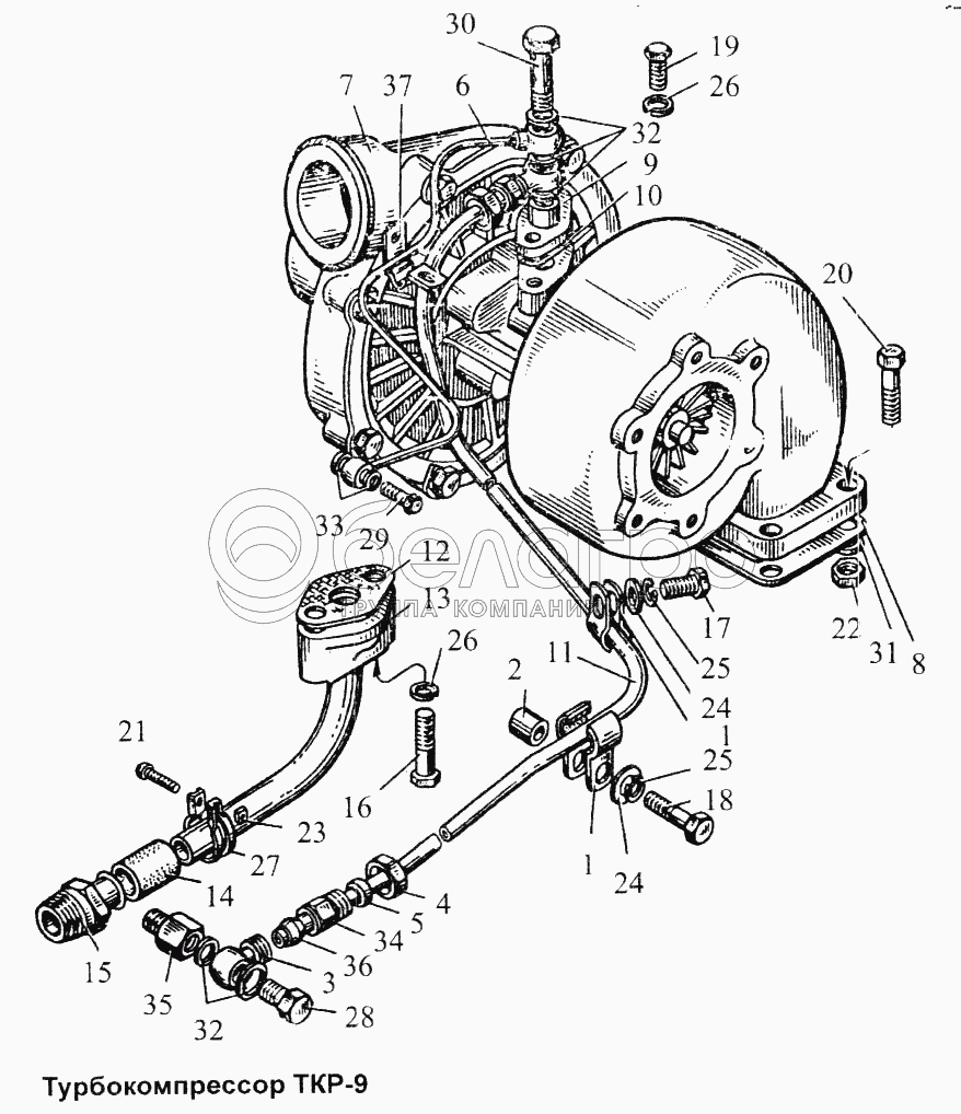 Каталог запасных частей к технике: ЯМЗ-238 НД. Турбокомпрессор ТКР-9