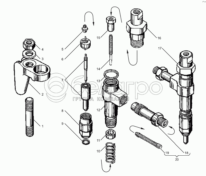 Каталог запасных частей к технике: ЯМЗ-238БЕ. Форсунка двигателей с общими головками цилиндров