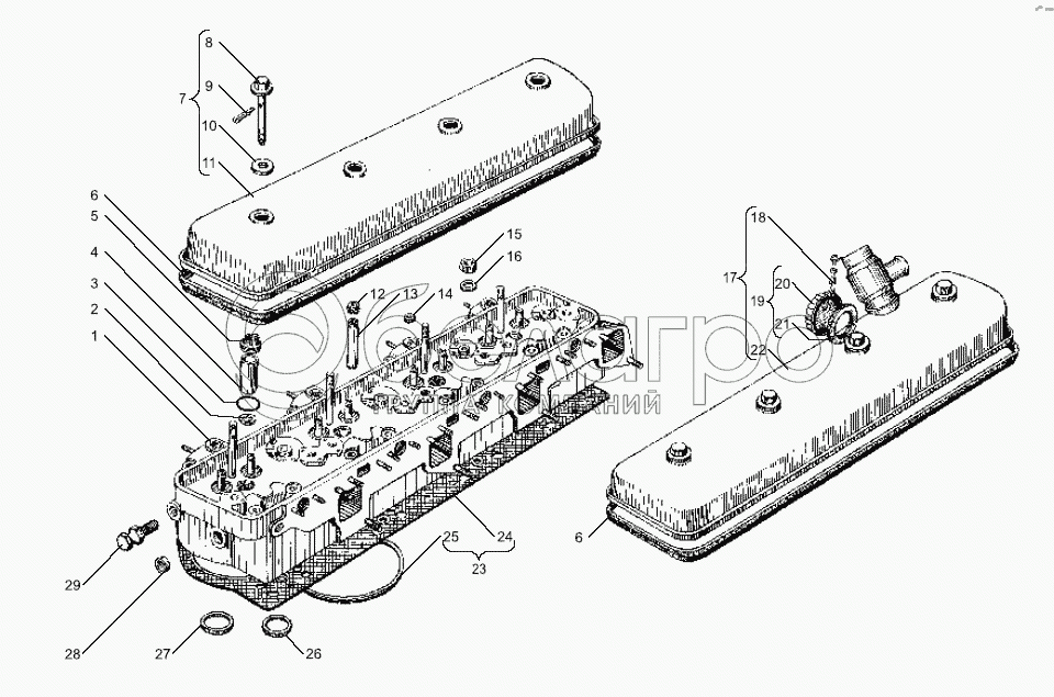 Каталог запасных частей к технике: ЯМЗ-238БЕ. Головка цилиндров двигателей ЯМЗ-238БЕ, ЯМЗ-238ДЕ