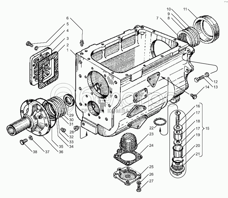 Каталог запасных частей к технике: ЯМЗ-238БЕ. Картер коробок передач ЯМЗ-239, ЯМЗ-2391