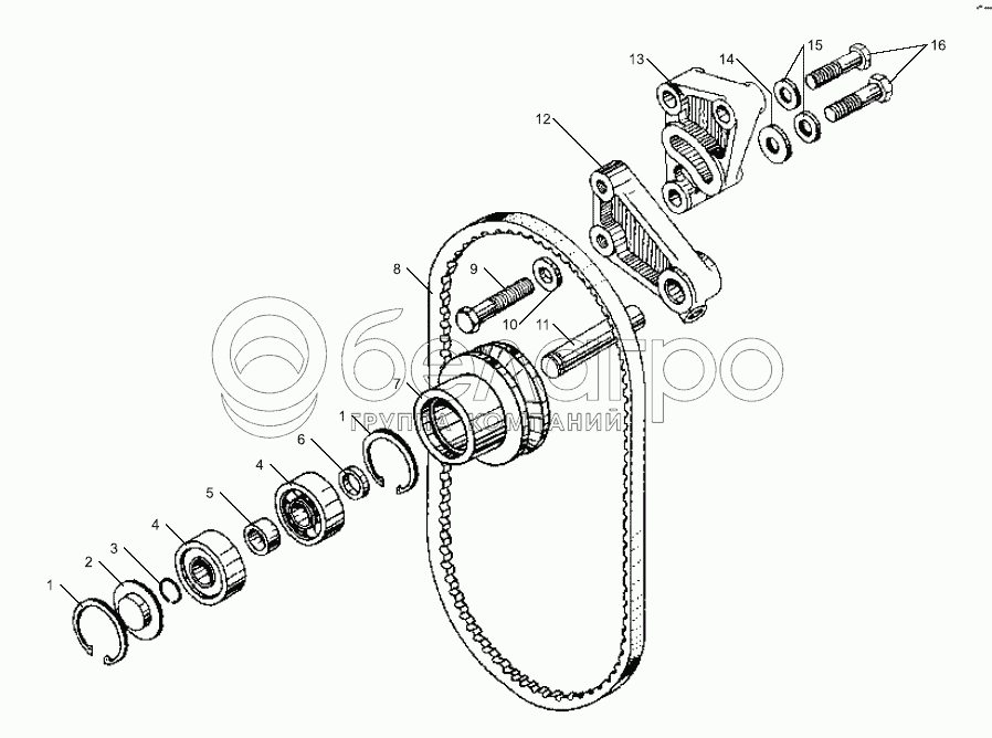 Каталог запасных частей к технике: ЯМЗ-238БЕ. Устройство натяжное ремня привода водяного насоса