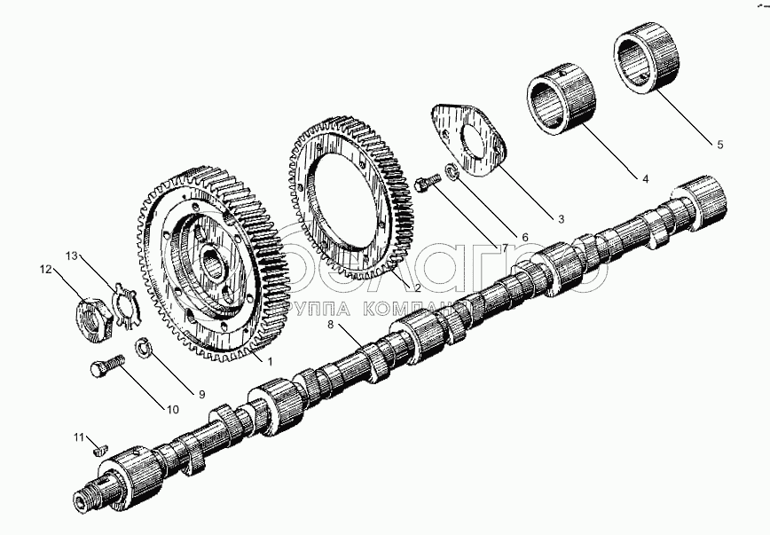 Каталог запасных частей к технике: ЯМЗ-238БЕ. Вал распределительный двигателей ЯМЗ-238БЕ, ЯМЗ-238ДЕ