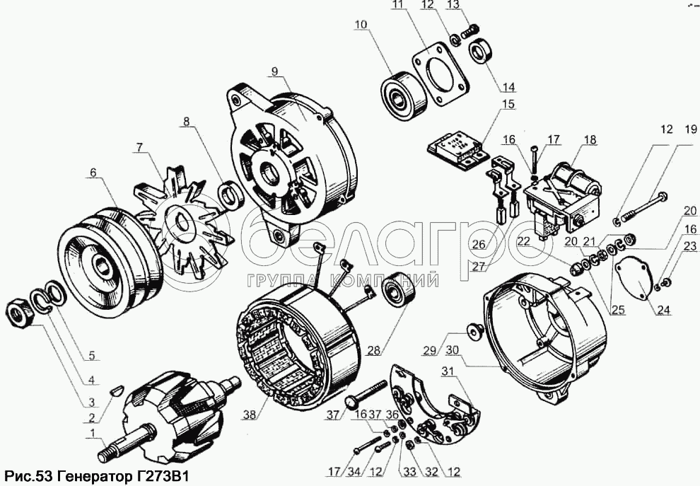 Каталог запасных частей к технике: ЯМЗ-238Д и Б. Генератор 273В1