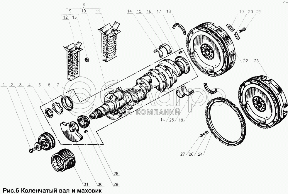 Каталог запасных частей к технике: ЯМЗ-238Д и Б. Коленчатый вал и маховик