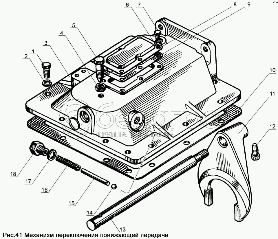 Каталог запасных частей к технике: ЯМЗ-238Д и Б. Механизм переключения понижающей передачи