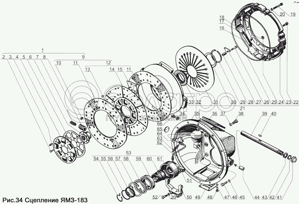 Каталог запасных частей к технике: ЯМЗ-238Д и Б. Сцепление ЯМЗ-183