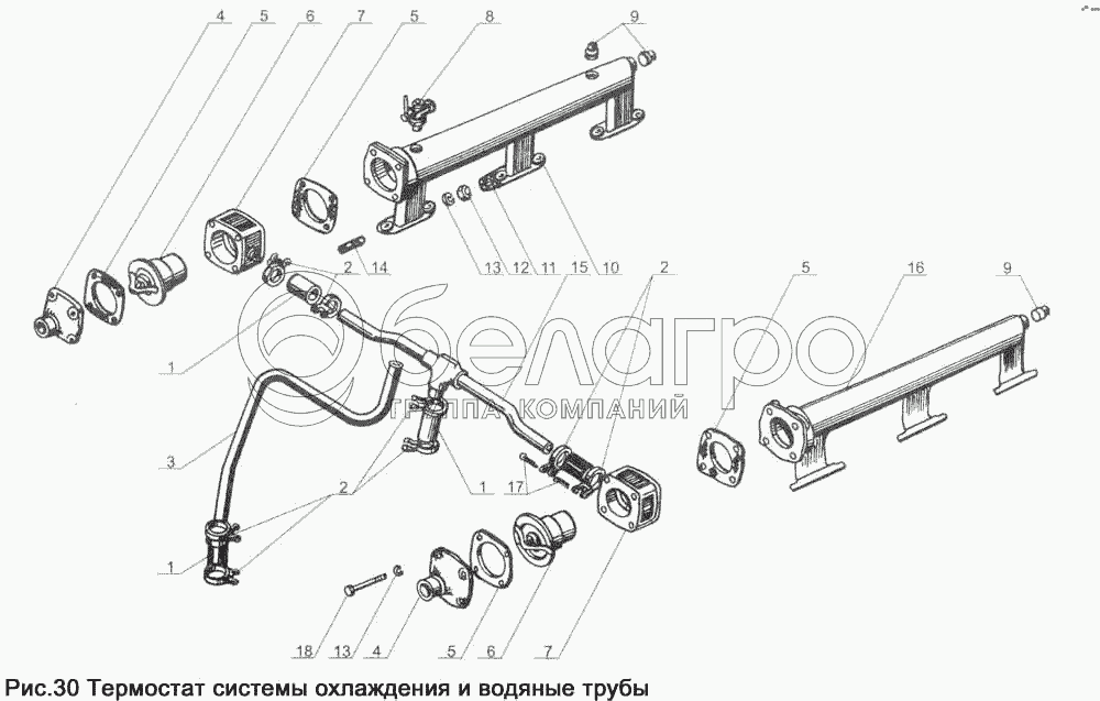 Каталог запасных частей к технике: ЯМЗ-238Д и Б. Термостат системы охлаждения и водяные трубы