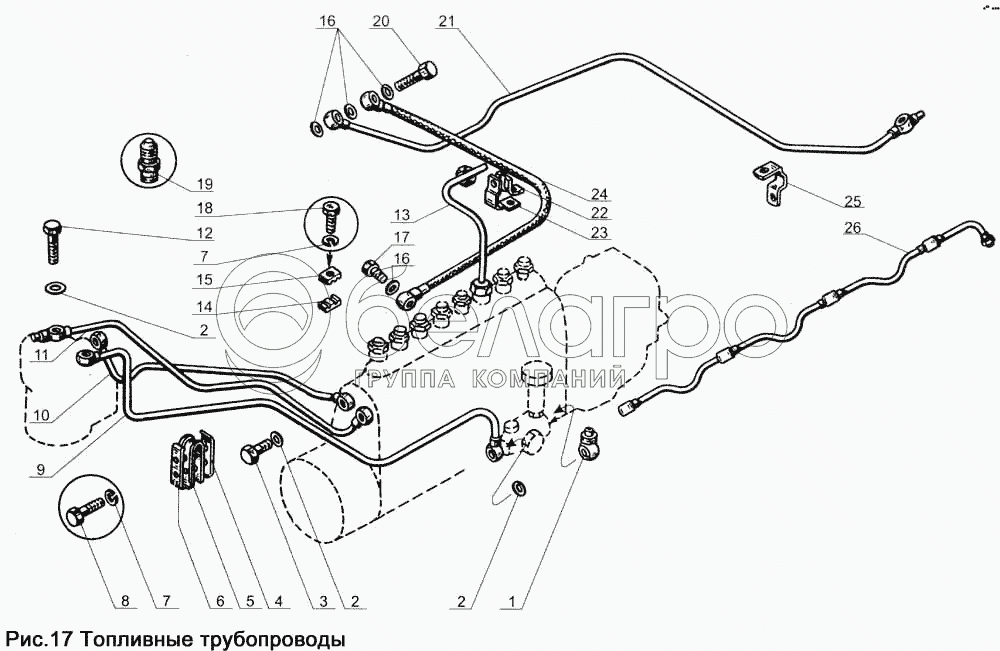 Каталог запасных частей к технике: ЯМЗ-238Д и Б. Топливные трубопроводы