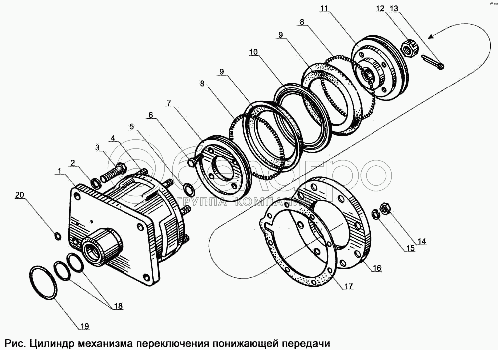 Каталог запасных частей к технике: ЯМЗ-238Д и Б. Цилиндр механизма переключения понижающей передачи