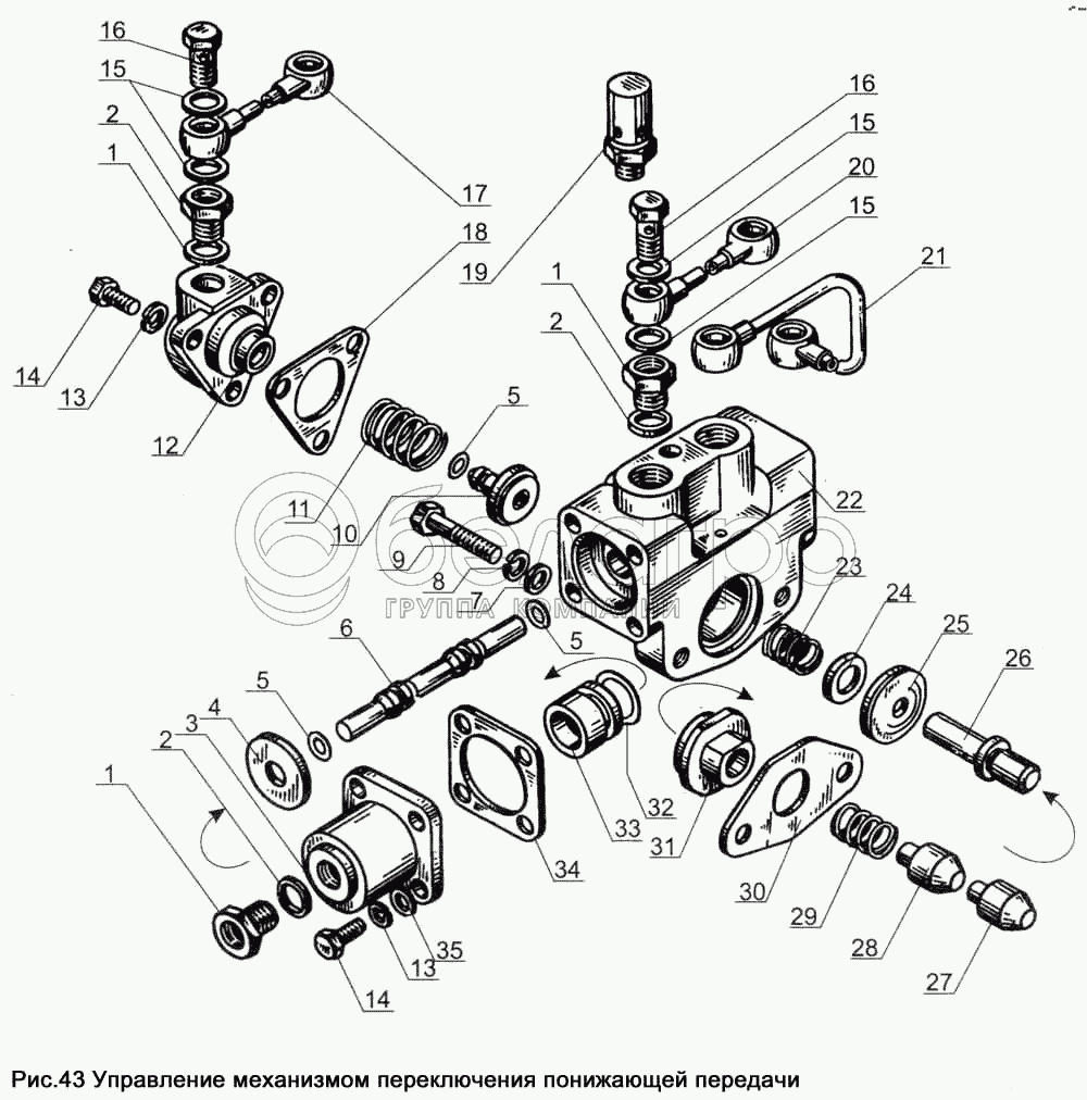 Каталог запасных частей к технике: ЯМЗ-238Д и Б. Управление механизмом переключения понижающей передачи