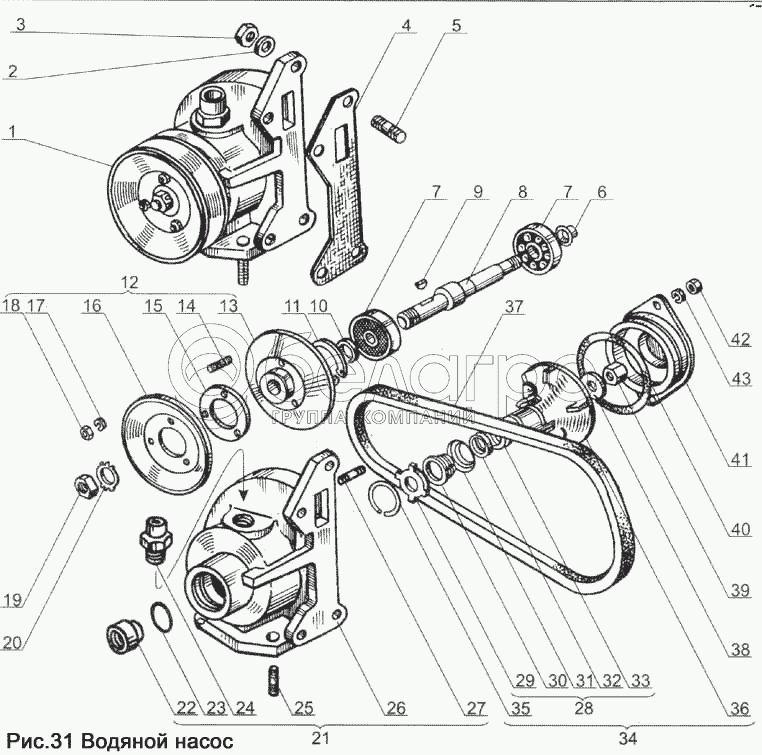 Каталог запасных частей к технике: ЯМЗ-238Д и Б. Водяной насос