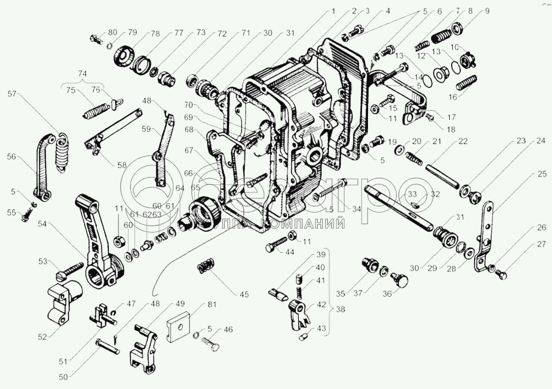 Каталог запасных частей к технике: ЯМЗ-238М2. Крышка регулятора частоты вращения