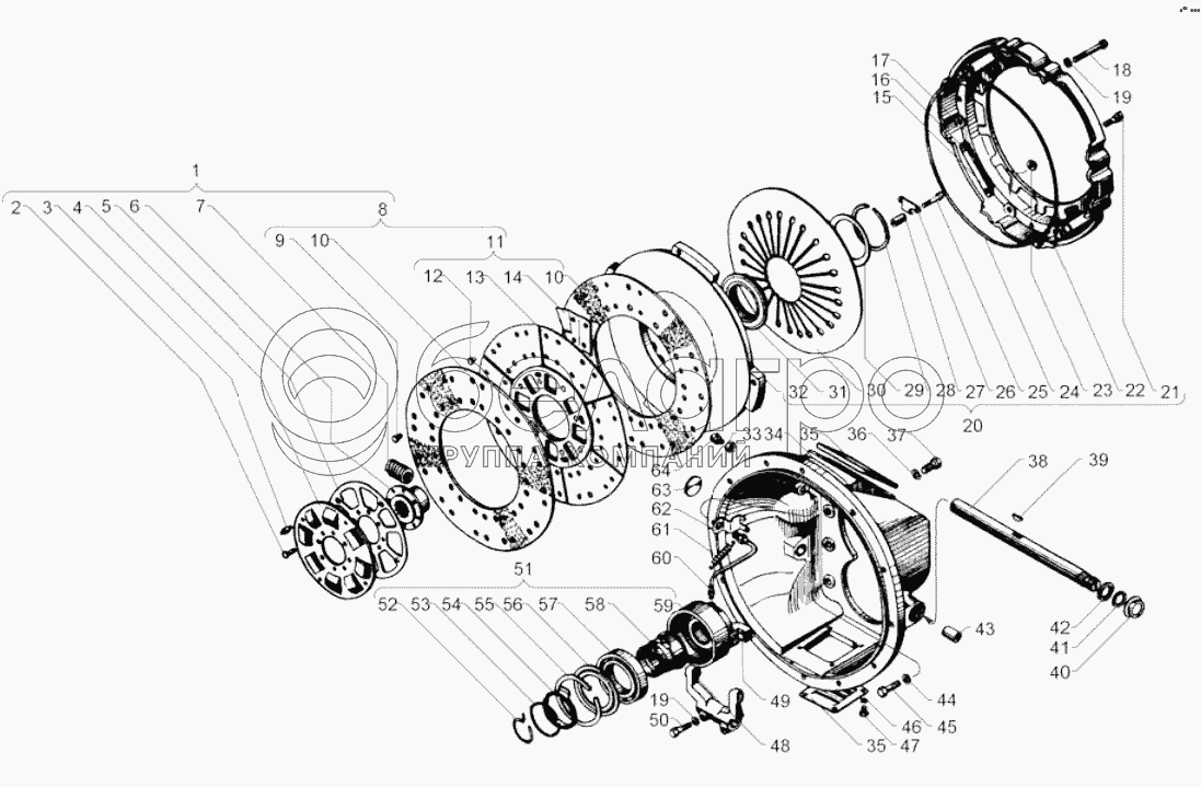 Каталог запасных частей к технике: ЯМЗ-238М2. Сцепление ЯМЗ-182