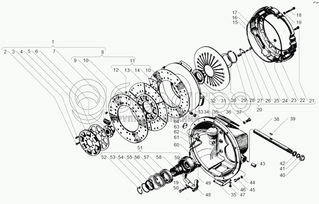 Каталог запасных частей к технике: ЯМЗ-238М2. Сцепление ЯМЗ-182-10