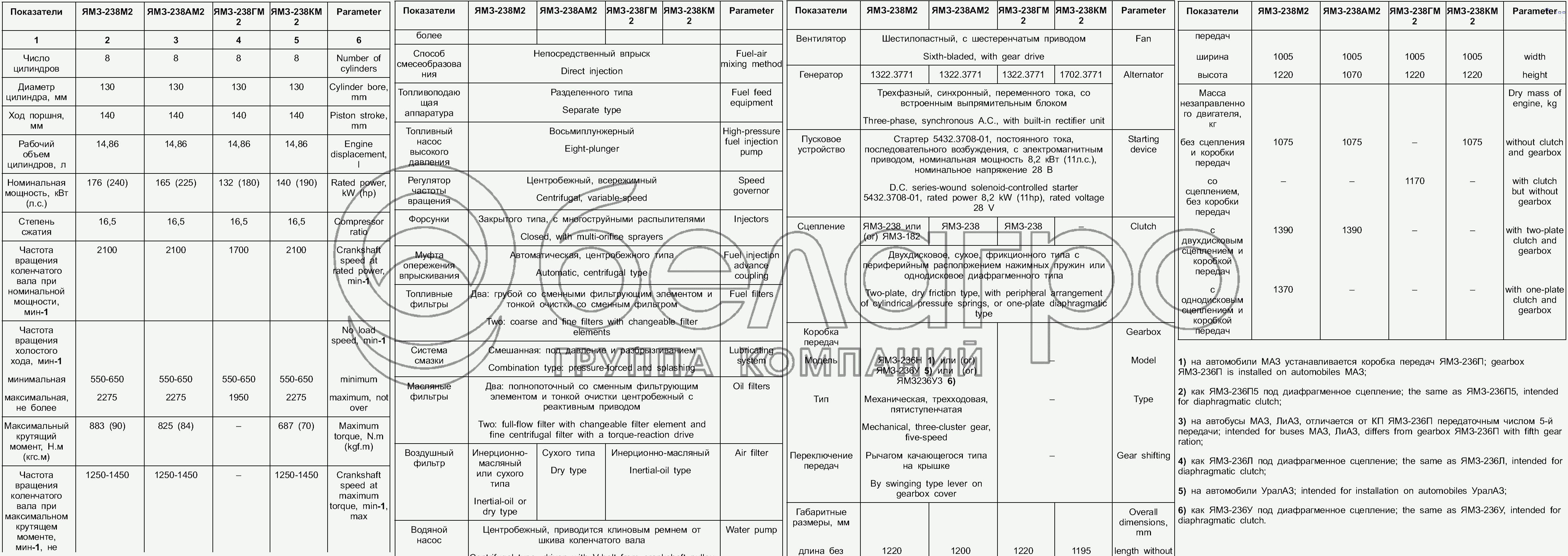 Каталог запасных частей к технике: ЯМЗ-238М2. Технические характиристики