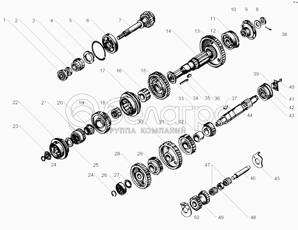 Каталог запасных частей к технике: ЯМЗ-238М2. Валы и шестерни коробки передач ЯМЗ-236Н