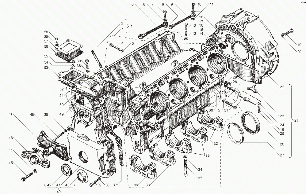 Каталог запасных частей к технике: ЯМЗ-238НД3, НД4, НД5. Блок цилиндров