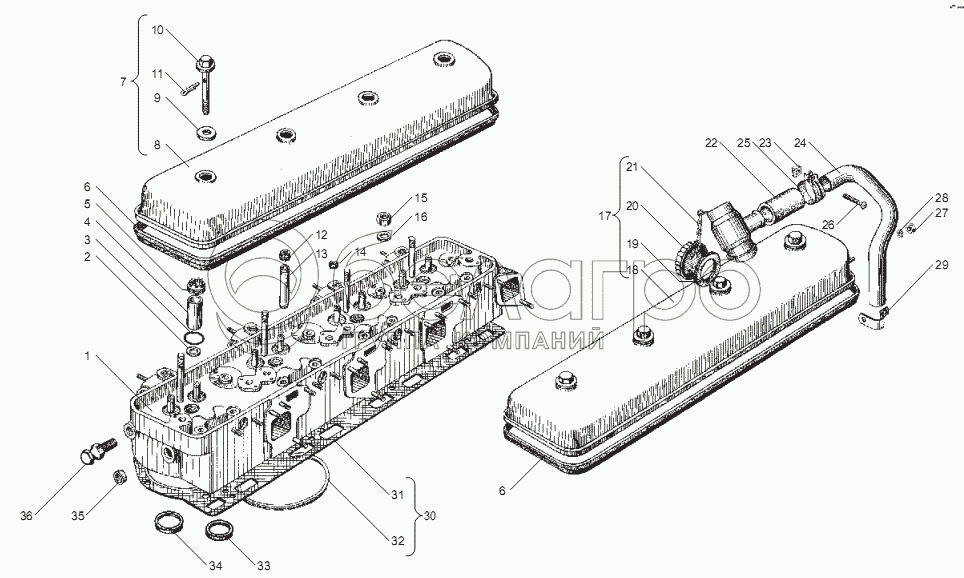 Каталог запасных частей к технике: ЯМЗ-238НД3, НД4, НД5. Головка цилиндров