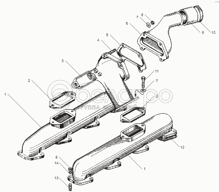 Каталог запасных частей к технике: ЯМЗ-238НД3, НД4, НД5. Коллекторы впускные
