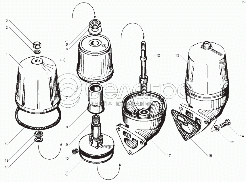 Каталог запасных частей к технике: ЯМЗ-238НД3, НД4, НД5. Маслоочиститель центробежный