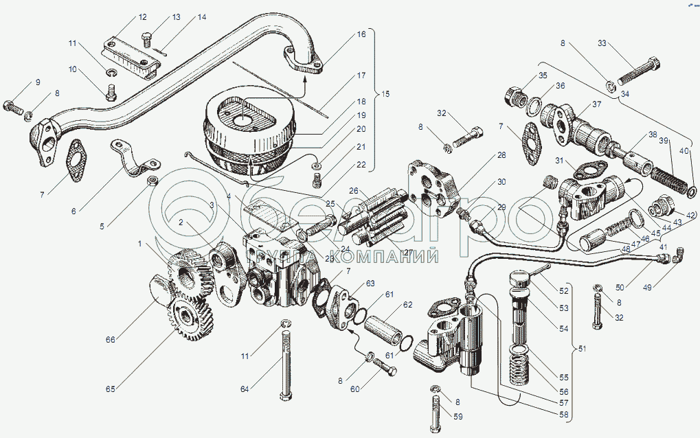 Каталог запасных частей к технике: ЯМЗ-238НД3, НД4, НД5. Насос масляный