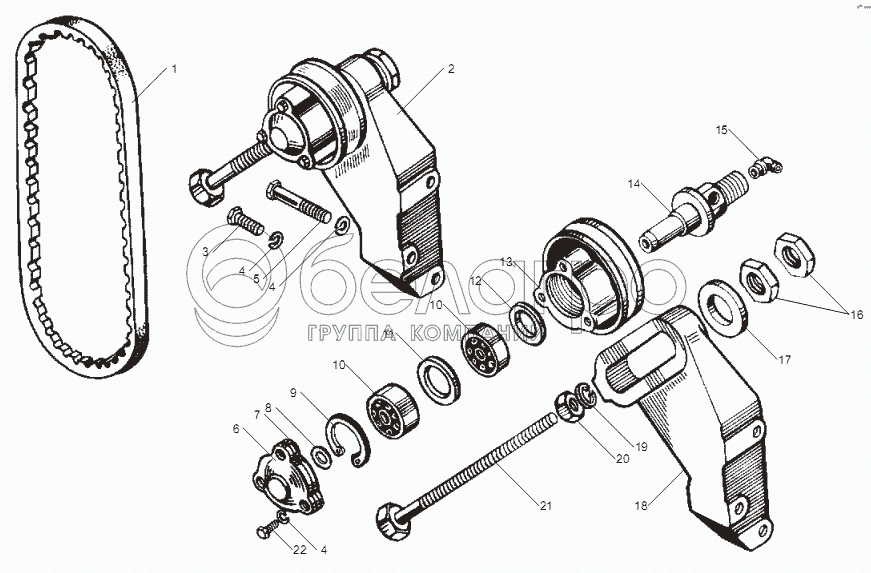 Каталог запасных частей к технике: ЯМЗ-238НД3, НД4, НД5. Устройство натяжное