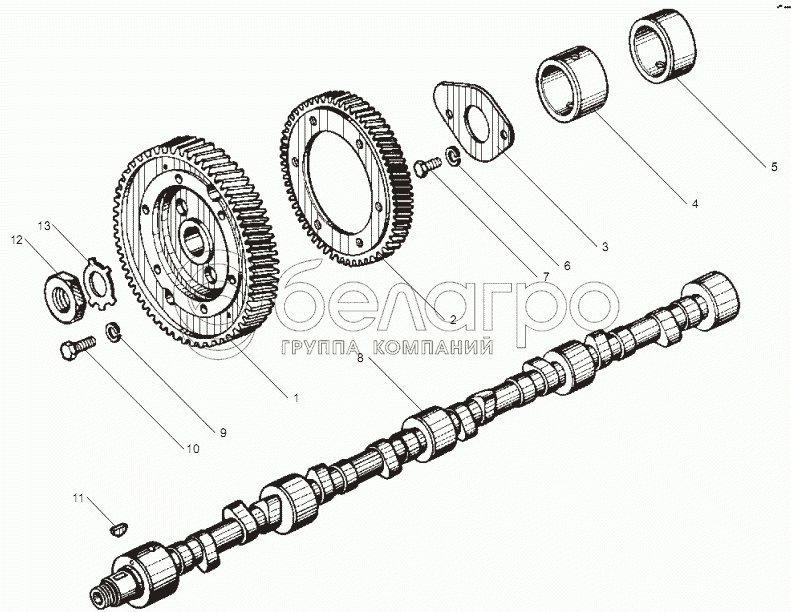 Каталог запасных частей к технике: ЯМЗ-238НД3, НД4, НД5. Вал распределительный