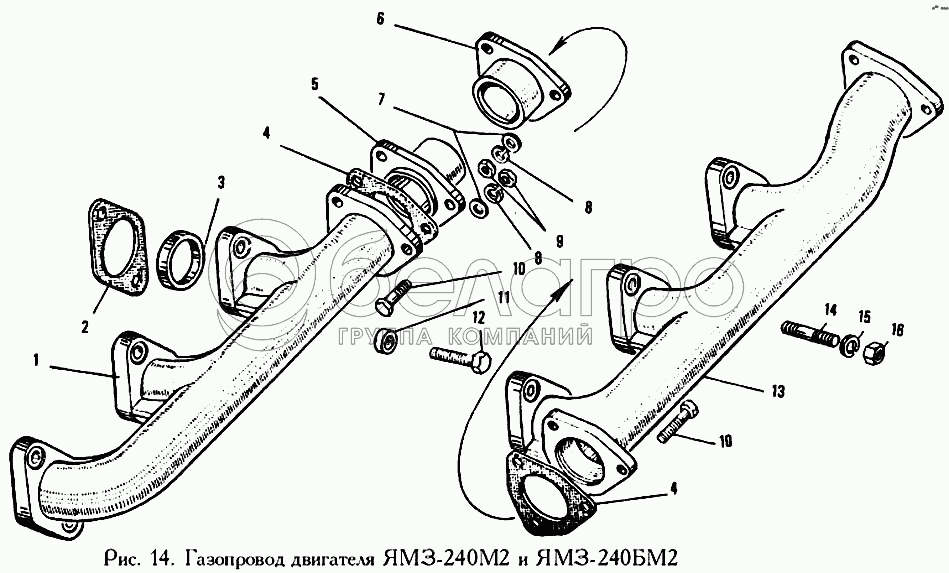 Каталог запасных частей к технике: ЯМЗ-240. Газопровод двигателя ЯМЗ-240М2 и ЯМЗ-240БМ2