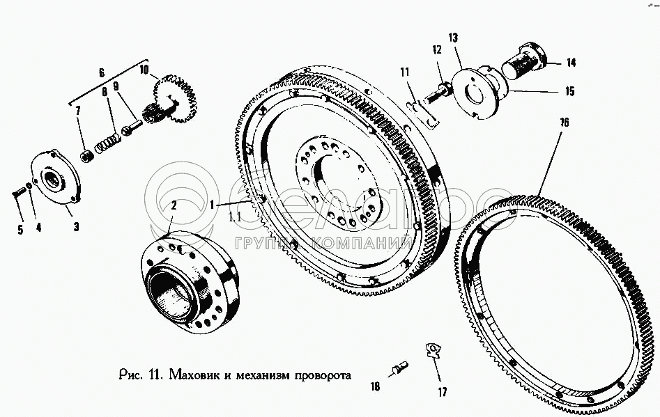 Каталог запасных частей к технике: ЯМЗ-240. Маховик и механизм поворота