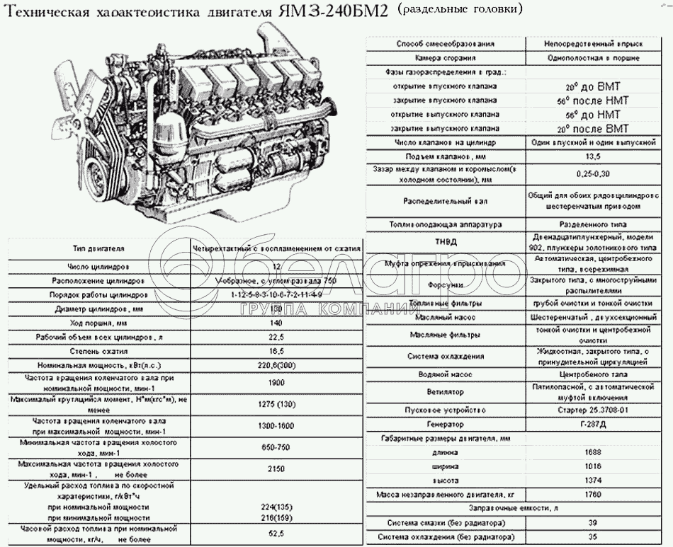 Каталог запасных частей к технике: ЯМЗ-240. Техническая характеристика ЯМЗ-240БМ2 (раздельные головки)