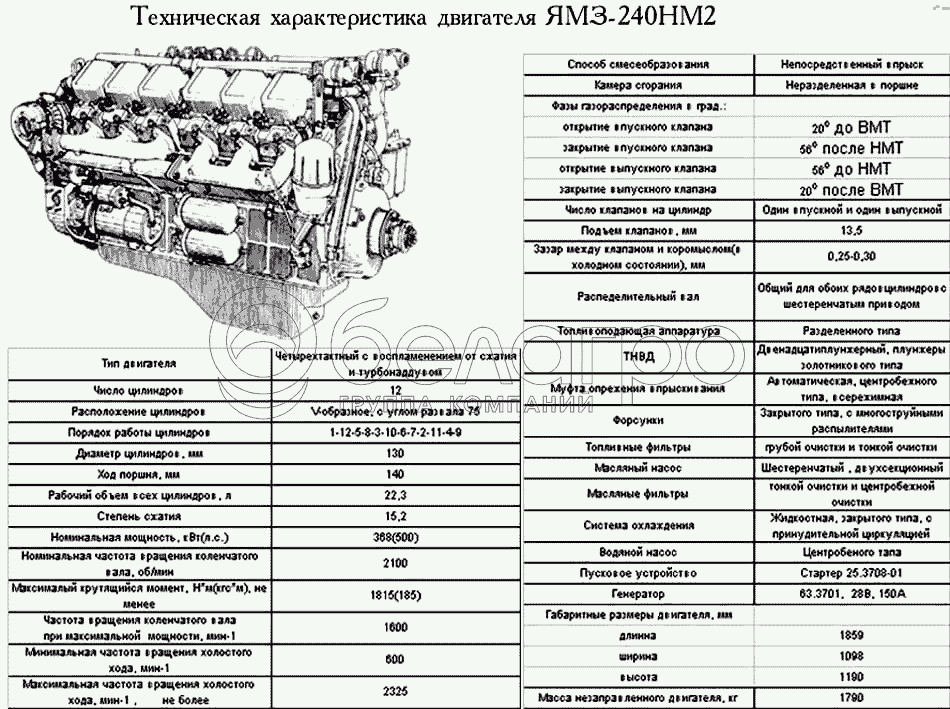 Каталог запасных частей к технике: ЯМЗ-240. Техническая характеристика ЯМЗ-240НМ2