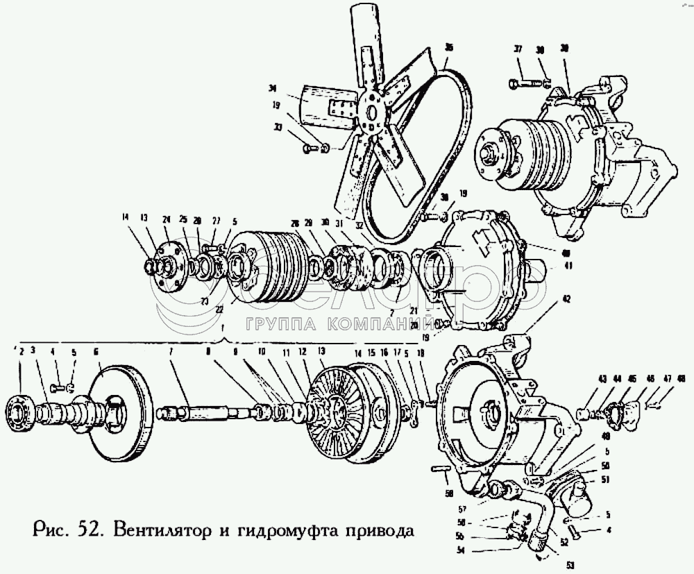 Каталог запасных частей к технике: ЯМЗ-240. Вентилятор и гидромуфта привода