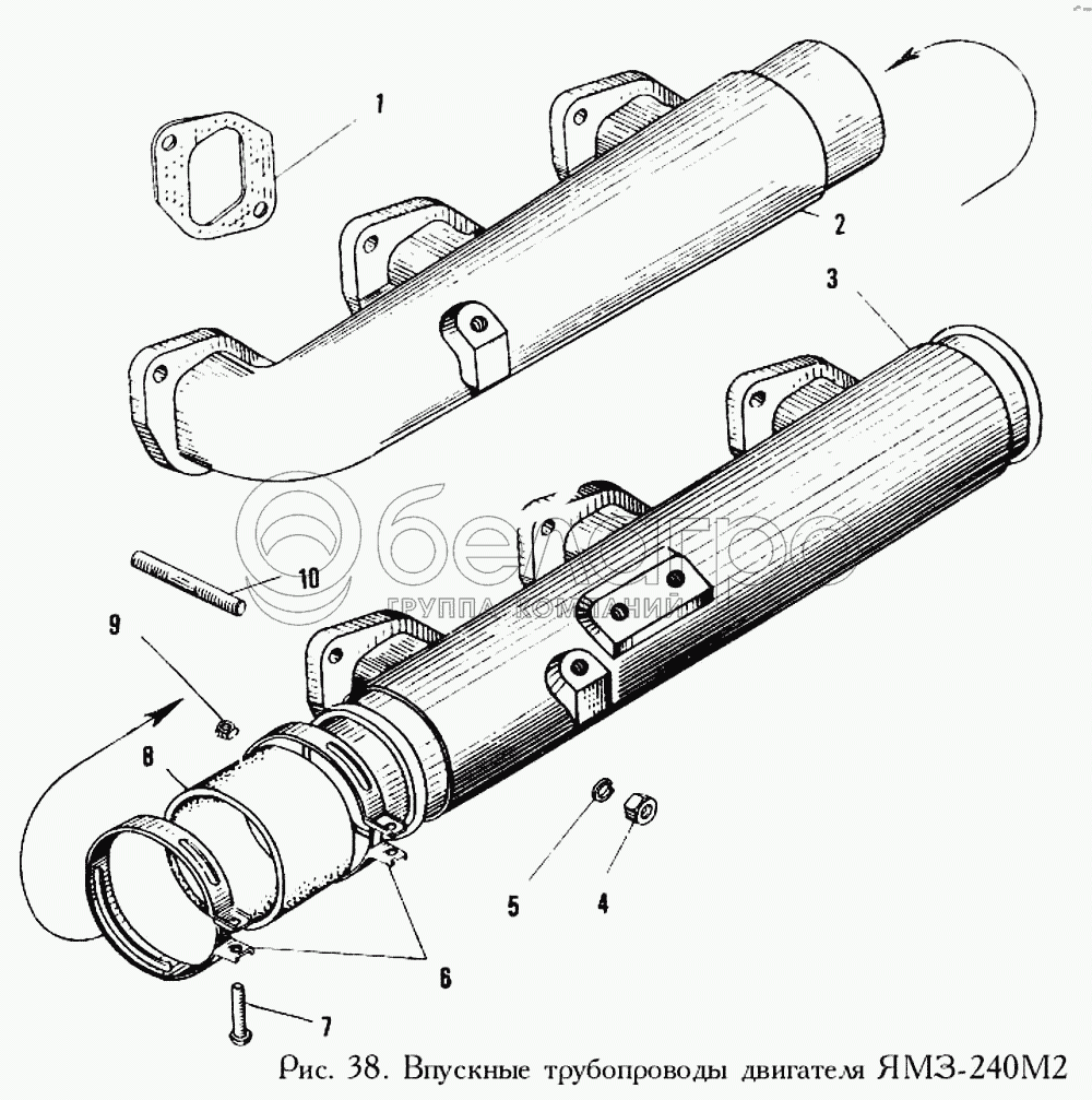 Каталог запасных частей к технике: ЯМЗ-240. Впускные трубопроводы двигателя ЯМЗ-240М2