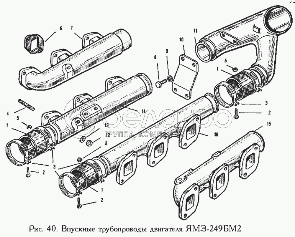 Каталог запасных частей к технике: ЯМЗ-240. Впускные трубопроводы двигателя ЯМЗ-249БМ2