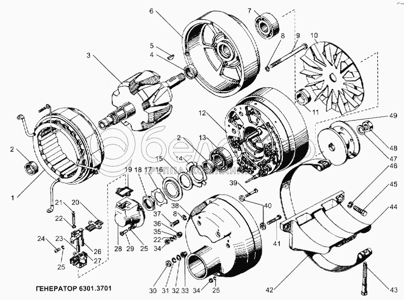 Каталог запасных частей к технике: ЯМЗ-240. Генератор 6301.3701