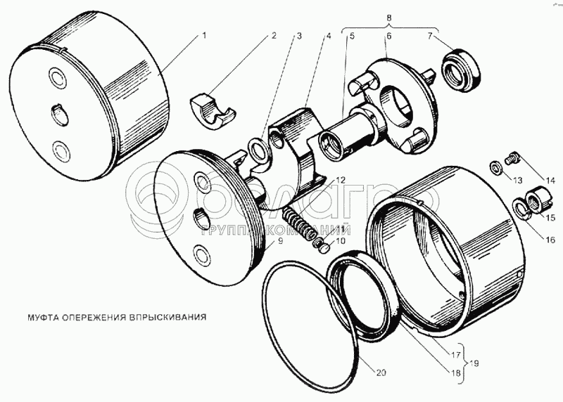 Каталог запасных частей к технике: ЯМЗ-240. Муфта опережения впрыскивания