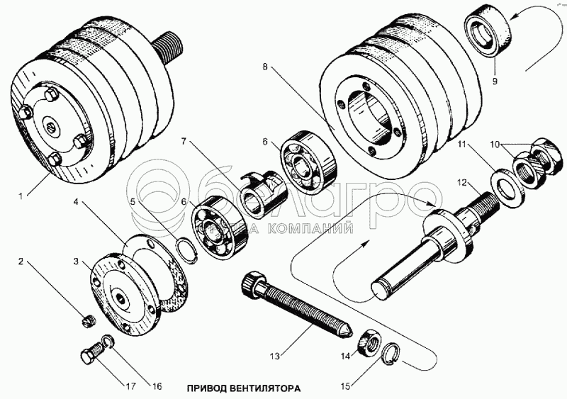 Каталог запасных частей к технике: ЯМЗ-240. Привод вентилятора