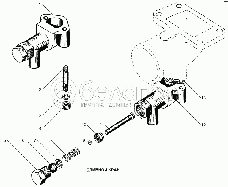 Каталог запасных частей к технике: ЯМЗ-240. Сливной кран