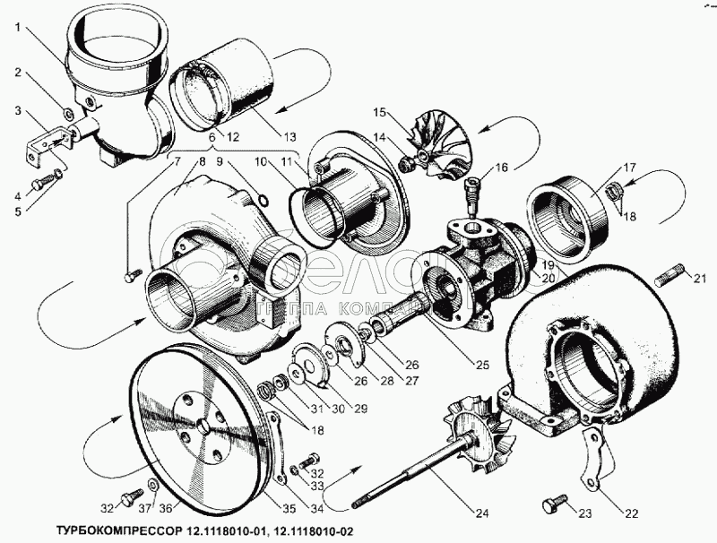 Каталог запасных частей к технике: ЯМЗ-240. Турбокомпрессор 12.1118010-01 (02)