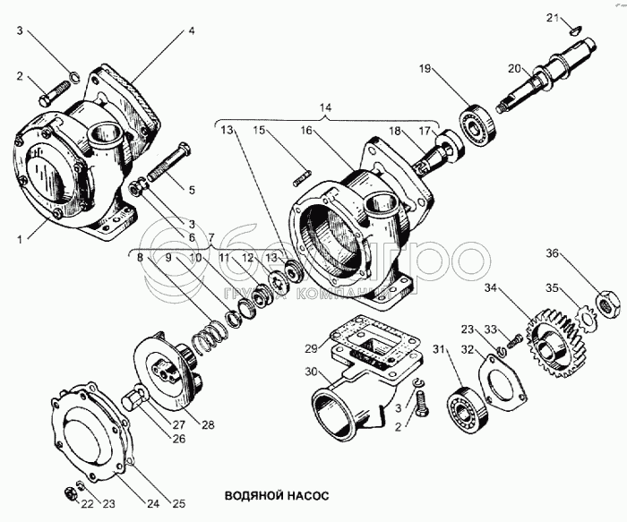 Каталог запасных частей к технике: ЯМЗ-240. Водяной насос